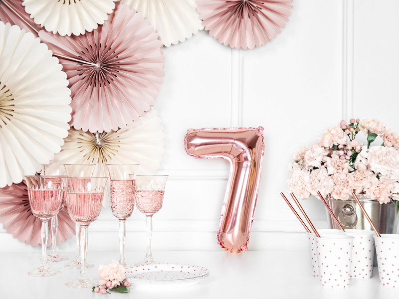 Folija balons ”7”, rožu zelta krāsā.