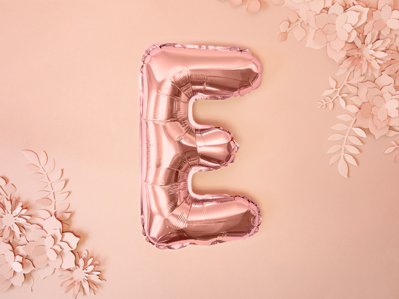 Sākums Baloni Folija Baloni Burti Rožu zelts Folija balons ”E”, 35cm, rožu zelts